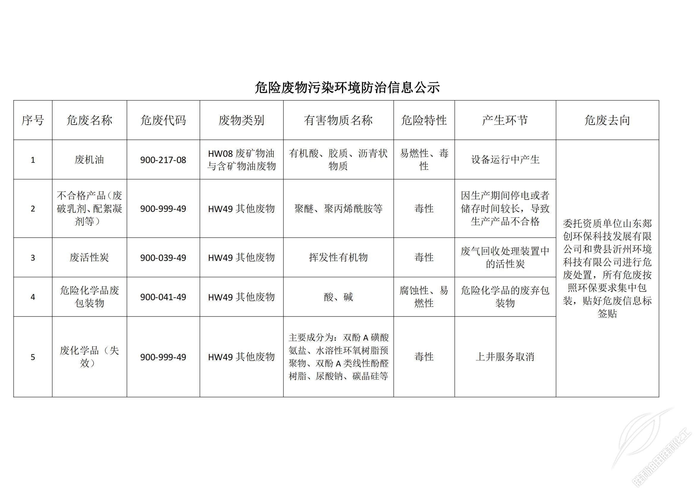 危險廢物污染環境防治信息公示 - **新聞 - 勝利油田淄博荣亨服装制造有限责任公司有限責任**