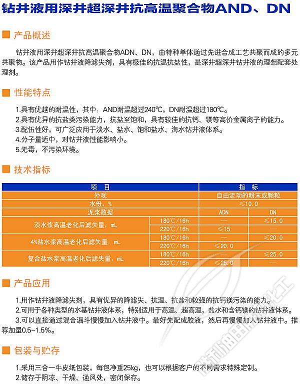 鑽井液用深井超深井抗高溫聚合物AND、DN - 鑽井用化學品 - 勝利油田淄博荣亨服装制造有限责任公司有限責任**