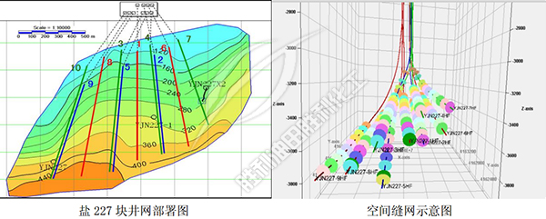 鹽 227 塊(kuài)于 2013 年 8 月 30 日開工(gong),10 月 2 日完成4 個井(jing)組 8 井次、79 級泵送(song)、87 段壓裂施工。共(gòng)用壓裂液 41930