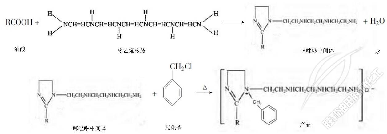 采用(yòng)真空法(fǎ),以脂肪(fáng)酸(油酸(suan)、蓖麻油(you)、精油酸(suan)等)與有(yǒu)機胺類(lei)(多乙烯(xī)多胺、二(èr)乙烯三(san)胺、雜環(huan)胺等)酰(xiān)胺反應(yīng)合成咪(mī)唑啉中(zhōng)間體,再(zai)與氯化(hua)苄季铵(an)化反應(ying)合成咪(mī)唑啉型(xíng)緩蝕劑(ji)。