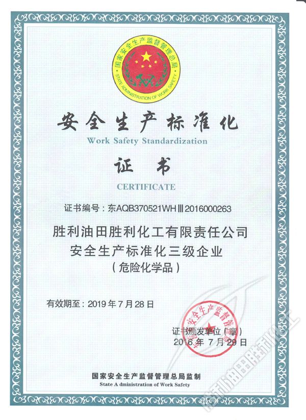 安全标準化證書 - 資質榮譽 - 勝利油田淄博荣亨服装制造有限责任公司有限責任**